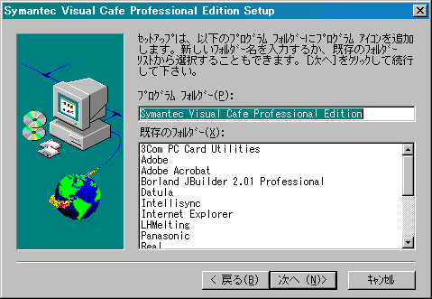 Windowsツールバーから[スタート]-[プログラム]-[Symantec Visual Cafe]-[Visual Cafe 3.0]を選んでVisual Cafeを起動してください。