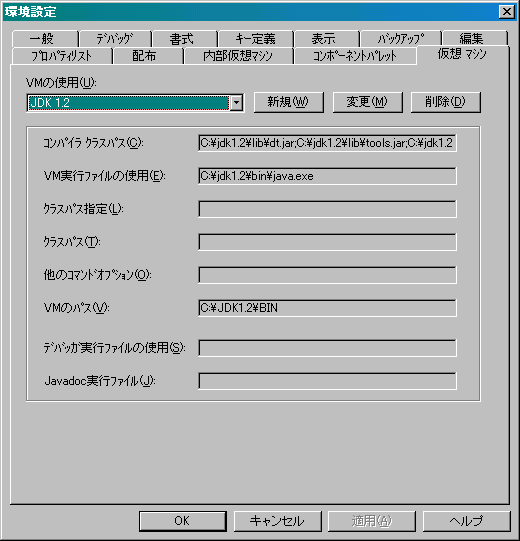 ただしJDK 1.2.xではビジュアル環境でのデバッグ、トレースはできません。